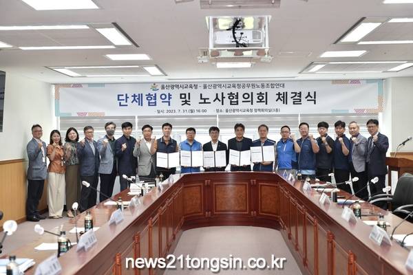 (뉴스21통신/우정석기자) = 울산광역시교육청(교육감 천창수)은 7월 31일 정책회의실에서 4개 지방공무원노동조합연대와 단체협약을 체결했다.
