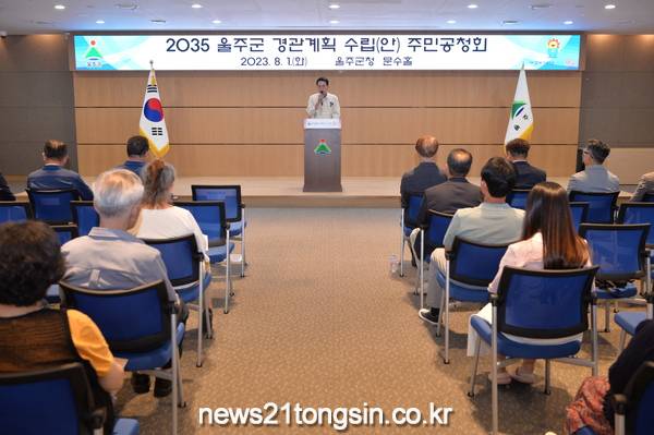 (뉴스21통신/우정석기자) = 울산시 울주군이 1일 군청 문수홀에서 관계 전문가와 주민, 공무원 등 100여명이 참석한 가운데 ‘2035 울주군 경관계획(안) 주민공청회’를 개최했다.