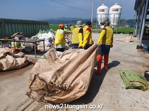 현장에 도착한 봉사자들은 비닐하우스 정리, 침수 주택의 정비 및 청소, 축사 정리 등 각종 쓰레기 및 부유물을 치우는 등 더운 날씨에도 불구하고 수해복구에 최선을 다했다.