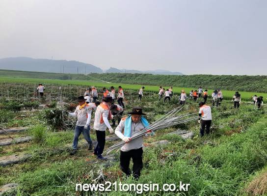 특히 청양군 청남면은 멜론, 토마토 등 시설원예 단지가 많은 지역으로 이날 작업은 비닐하우스 안에 남아 있는 폐비닐을 걷어내고, 침수된 멜론 잔해물과 토사 제거에 집중했다.