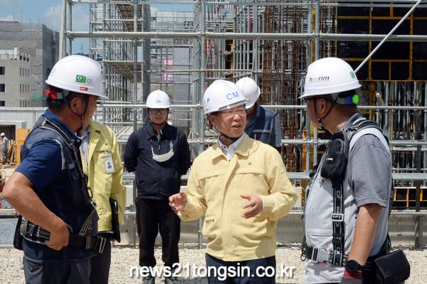 이날 오전 송정동 복합 커뮤니티센터 건설 현장을 찾은 박병규 청장은 무더위 속 노동자의 건강‧안전을 위한 현장 조치와 폭염 예방 수칙 준수 여부 등을 살피며 기상 상황에 따라 작업 시간 조정 등 안전을 최우선으로 해달라고 당부했다.