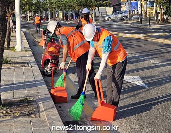 (뉴스21통신/임정훈기자) = 울산시 동구청은 8월 3일 오전 6시 30분부터 일산해수욕장에서 환경공무직 및 직원과 함께 환경공무직 현장체험행사를 가졌다.