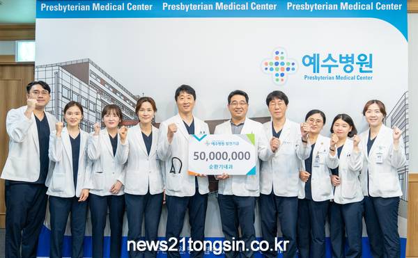 뉴스21통신전북/김문기기자=예수병원(병원장 신충식) 순환기내과는 최근 병원 발전을 위해 발전기금 5천만 원을 기탁했다.