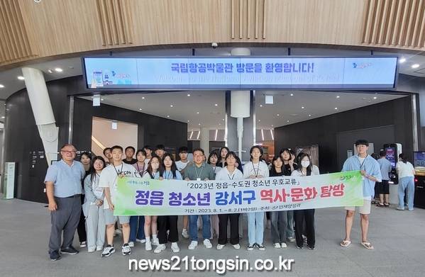 뉴스21통신전북/김문기기자=정읍 청소년 24명이 강서구청 행정지원과 직원들의 인솔하에 8월 1일부터 2일까지 1박 2일 동안 강서구를 방문하여 강서구의 역사·문화를 탐방하였다.