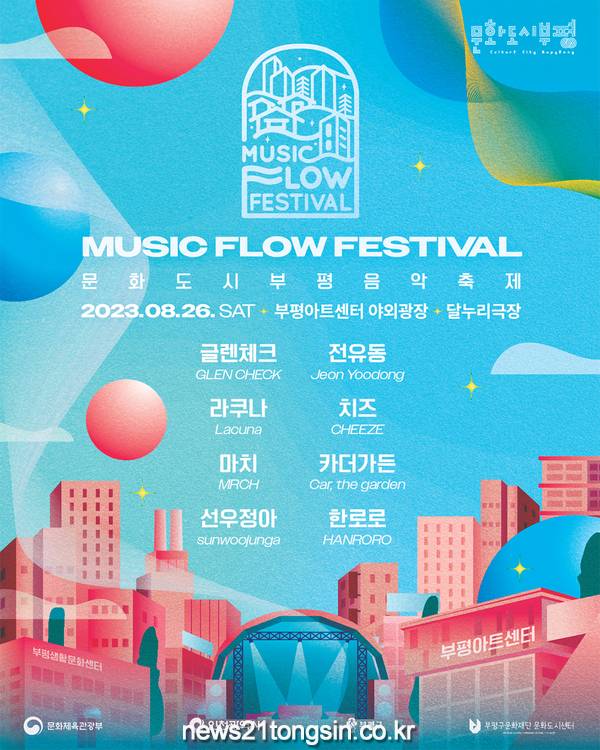 부평구(구청장 차준택) 문화도시센터가 8월 26일 오후 4시부터 부평아트센터 야외광장과 달누리극장에서 ‘뮤직 플로우 페스티벌(MUSIC FLOW FESTIVAL)’을 진행한다.