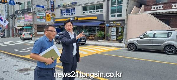 김대영 의원은 이날 남구 교통행정과 담당 공무원과 함께 현장을 찾아 우회전 전용 신호기 도입 등 통학로 안전 개선방안을 검토하고, 표기 오류로 주민들이 불편을 겪고 있는 일대 교통안내 표지판과 시설물 현황을 파악했다.