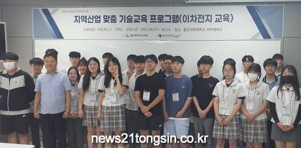 울산시교육청은 7~25일까지 울산과학대학교에서 지역기업 취업을 희망하는 직업계고 2, 3학년 학생 52명을 대상으로 이차전지와 로봇 응용 분야 지역산업 맞춤 기술교육을 진행한다.