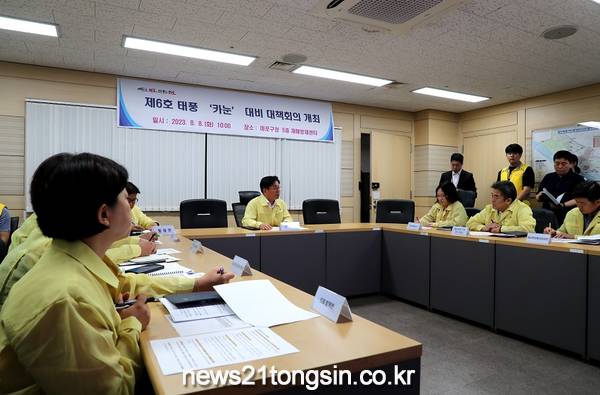 박강수 구청장은 “태풍 ‘카눈’ 북상에 따라 소관 부서 별 추진사항을 철저히 이행해 주기 바라며 사전 대비를 통해 구민의 안전에 만전을 기해달라”라고 당부했다.