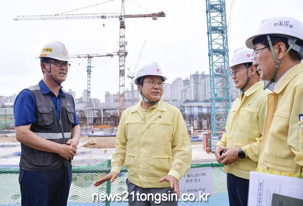 강 시장은 재건축정비사업이 진행 중인 대형공사장을 방문, 현장에 설치된 8대의 타워크레인과 굴착면 등을 점검하고 현장 책임자에게 태풍 피해 예방에 최선을 다할 것을 당부했다.