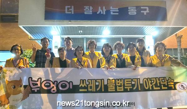 (뉴스21통신/임정훈기자) = 울산 동구 대송동 행정복지센터는 지난 8월 8일 오후 8시부터 ‘부엉이 감시단 불법투기 야간단속’ 활동을 실시했다.