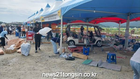 전라북도를 비롯한 행정기관과 기업, 도민들이 힘을 합쳐 2023 새만금 제25회 세계스카우트 잼버리 행사장 뒷마무리 작업에 나섰다.