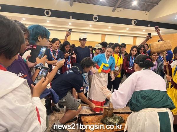 지난 9일 오전, 잼버리 스카우트 대원들이 숙소별로 마련된 전통문화 체험장을 찾았다. 고양문화원 소속 문화예술 보존 단체인 ▲고양들소리 ▲예를전하는사람들 ▲고양유림 봉암서예원 ▲행주서원의 지원 아래 대원들은 목판 인쇄, 떡메 치기, 전통 차 시음 등을 진행했다.