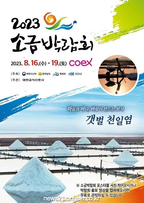 신안군은 8월 16일(수)부터 19일(토)까지 총 4일간, 서울 코엑스에서 "하늘아래 다양한 소금과 만나다"라는 주제로 '2023 소금박람회'를 개최할 예정이라고 발표했다.