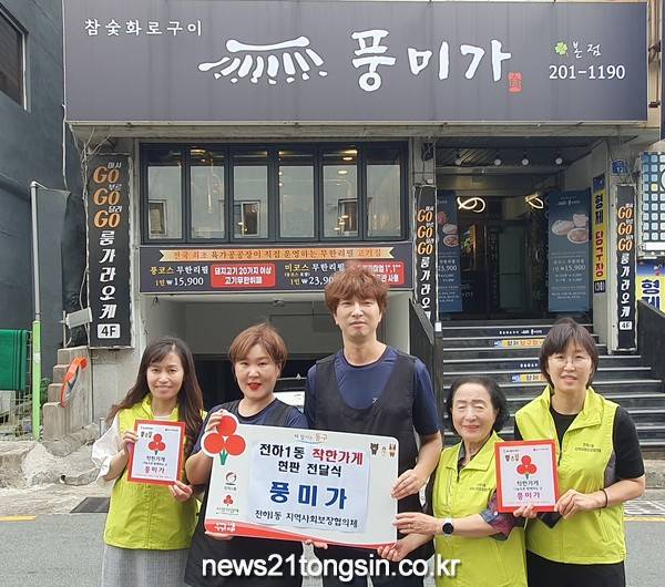 (뉴스21통신/임정훈기자) = 울산 동구 전하1동 지역사회보장협의체(공동위원장 박경희)는 8월 16일 돼지고기 전문점 ‘풍미가’에 착한가게 현판을 전달하였다.