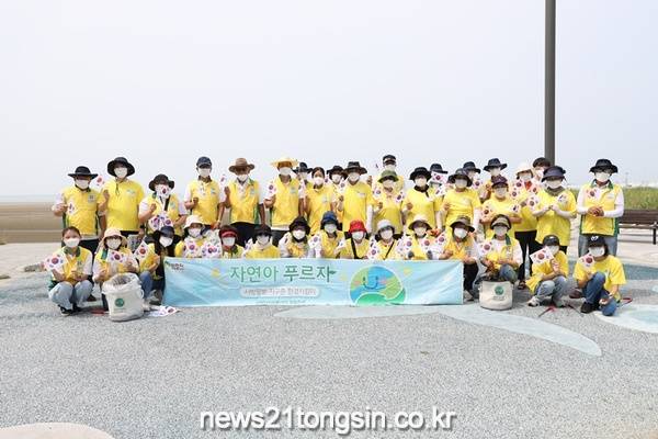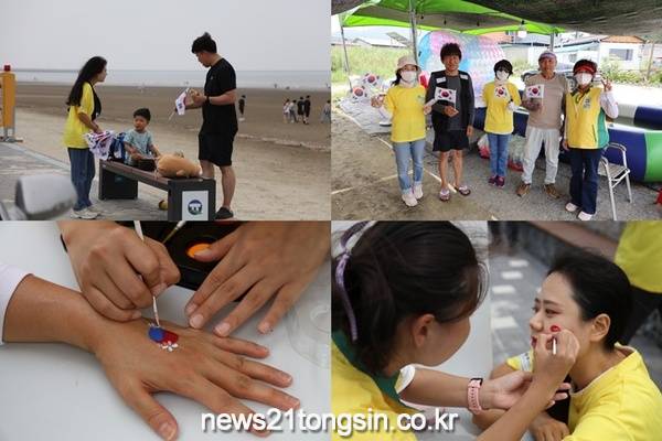 자원봉사단은 태극기 무료 나눔 행사와 함께 해수욕장 정화 활동도 함께 펼쳤다.