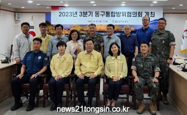 (뉴스21통신/임정훈기자) = 울산시 동구청은 8월 17일 오후 3시 동구청 2층 상황실에서 동구통합방위협의회 의장(동구청장 김종훈) 주재로 민·관·군·경·소방 등 20여명 위원들이 참여한 가운데 3분기 동구 통합방위 협의회를 개최했다.