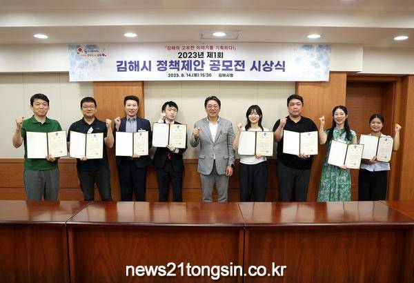 김해시(시장 홍태용)는 전 국민을 대상으로 실시한 2023년 제1회 김해시 정책제안공모전 시상식을 14일 개최했다.