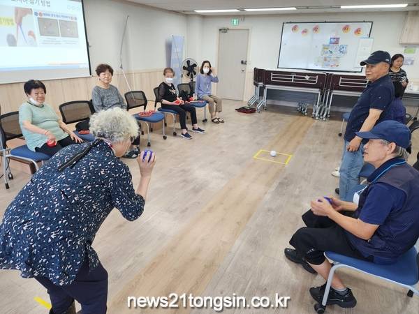 또 뇌성마비 중증 장애인과 운동성 장애인을 위해 고안된 ‘보치아운동’은 어르신들의 근조절기능 향상을 돕고 있다.