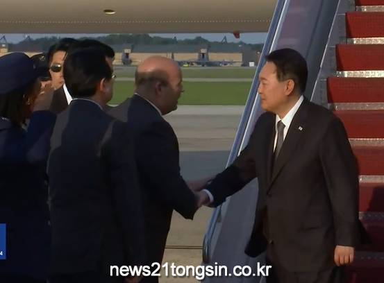 윤석열 대통령이 한미일 정상회의가 열리는 미국에 도착했다.