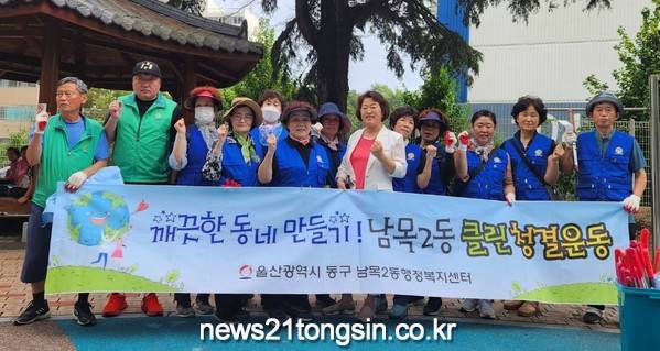 (뉴스21통신/임정훈기자) = 울산 동구 남목2동 행정복지센터(동장 김명자)는 여름을 맞이하여 8월 18일 오후 4시 새마을협의회(회장 여종구) 및 바르게살기위원회(회장 김영혜)와 합동하여 환경 정비를 실시하였다.
