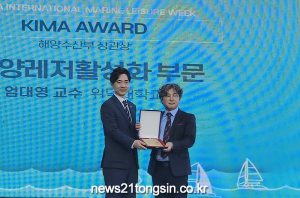 (뉴스21통신) 유재원기자 = 위덕대 엄대영 교수(건강스포츠학부)는 8월 18일(금) 부산 광안리해수욕장에서 열린 「제11회 대한민국 국제해양레저위크(KIMA WEEK)」 개막식에서 해양레저활성화 부문 대상을 차지하며 해양수산부 장관상을 수상했다.
