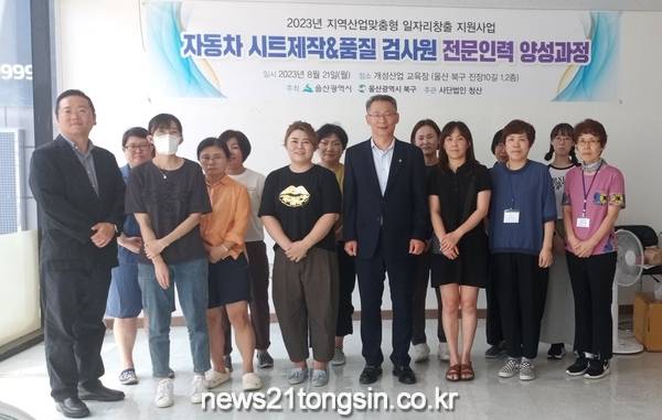 (뉴스21통신/권혁진기자) = 울산 북구는 21일 진장동 교육장에서 자동차 시트제작&품질검사원 양성과정 개강식을 열었다.