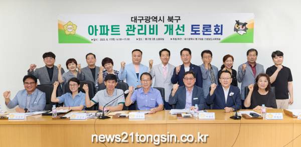 (뉴스21통신) 유재원기자 = 대구광역시 북구의회 신성장도시위원회는 지난 17일(목) 북구의회 5층 소회의실에서 오영준 의원, 이상봉 의원, 이성근 의원, 그리고 아파트 입주자대표, 아파트 관리소장 협회, 관계 공무원 등 30명이 참가한 가운데 아파트관리비 개선을 위한 토론회를 개최했다.