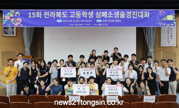 올바른 심폐소생술(CPR) 재현에 최선을 다했던 이날 경연대회 대상에는 김제 만경고(인솔 교사 표미순. 여), 최우수상은 정읍 학산고(인솔 교사 정지영. 여), 우수상은 각각 군산 중앙고(인솔 교사 정성민. 남), 전주 한일고(인솔 교사 장현지. 여), 군산고(인솔 교사 김다혜. 여) 3곳이며 그리고 특별상은 전북여고(주진규. 남)가 수상하는 영예를 안았다.