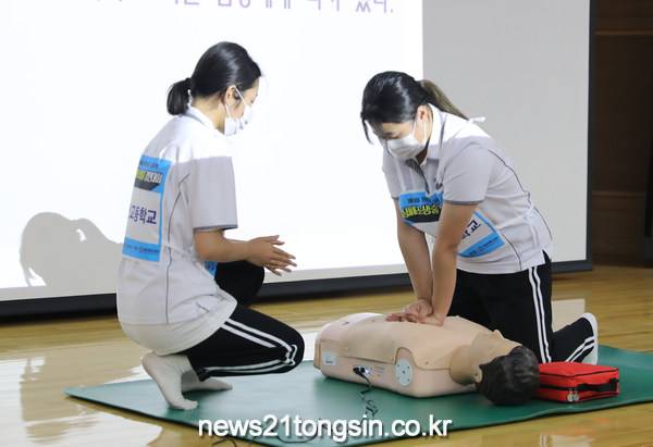 지난 11일 예비 모임을 거쳐 열린 이날 심폐소생술 경연대회에는 고등학교별 인솔 교사 외 약 40여명이 참여했다.