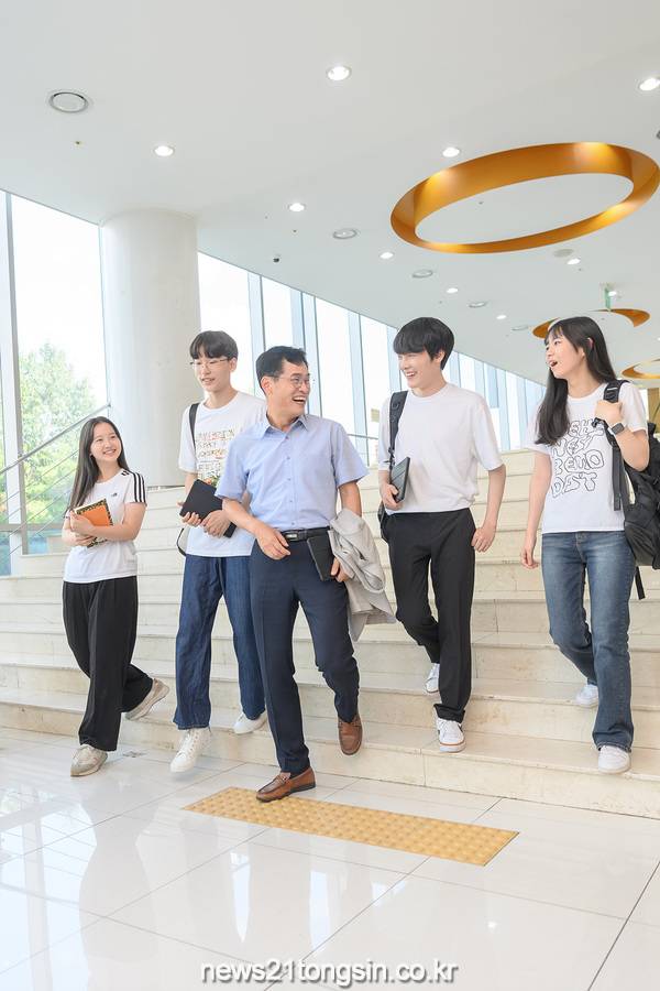 (▲사진=지역청소년들과 소통하고 있는 이기재 양천구청장)