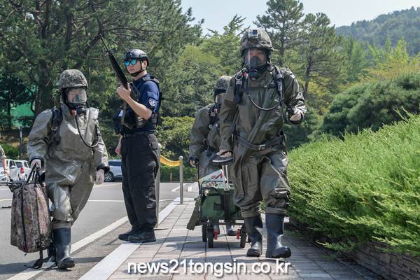 훈련내용은 국방과학연구소 본부 폭발음 청취 및 미상연기 발견을 시작으로 ▸현장지휘소 개소 ▸차단선 점령 ▸수색정찰 ▸폭발물 처리 및 시설물 피해복구 순으로 진행되었다.