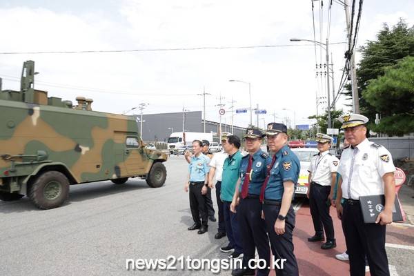 경북경찰청(청장 최주원)은 2023년도 을지훈련 실시에 따른 군작전 차량 이동로 및 응급구조차량 등의 비상차로 확보를 위한 차량 이동통제훈련 현장을 찾아 도로 교차로와 근무자 주요 배치장소를 점검하고, 경찰‧공무원 등 훈련 참여자들에게 “실질적인 통제훈련이 될 수 있도록 최선을 다해달라“고 당부했다.