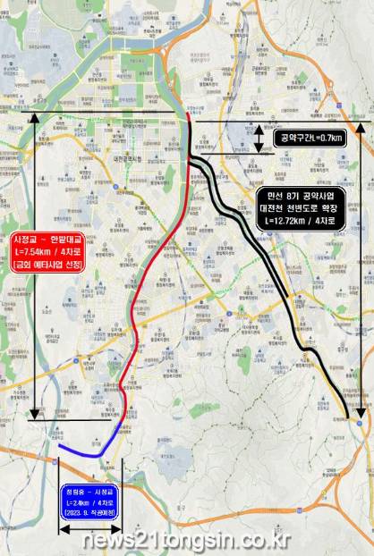 한편 사정교~한밭대교 도로개설은 대전시가 지난 2018년 12월 사전 타당성조사 결과, B/C가 1.12로 경제성이 충분한 것으로 분석된 사업이다.