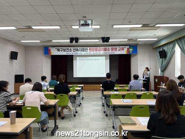 (뉴스21통신/권혁진기자) = 울산 북구보건소는 25일 보건소 보건교육실에서 신속대응반 현장응급의료소 운영 교육을 실시했다.