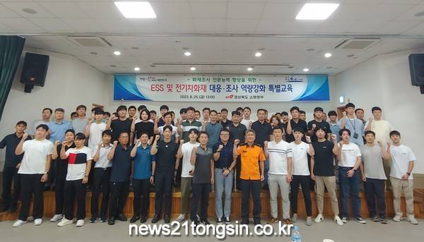 경북소방본부는 지난 25일 의성소방서에서 도내 21개 소방서 화재조사관과 현장 대응요원 등 70명이 참석한 가운데 관련분야 전문가인 국립소방연구원 나용운 박사를 초빙해 ESS 및 전기자동차 화재 대응과 화재조사기법 특별교육을 실시했다.