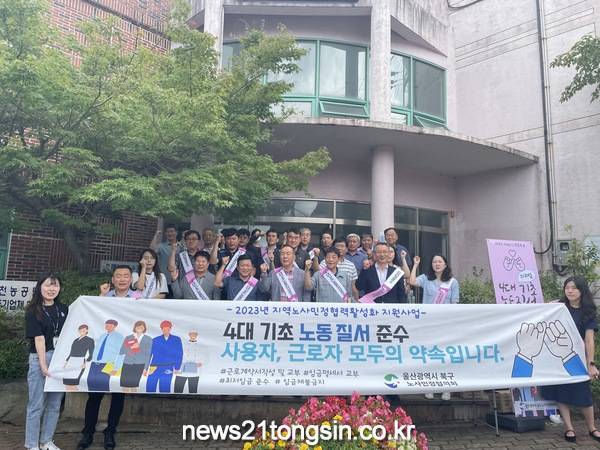 (뉴스21통신/권혁진기자) = 울산 북구 노사민정협의회는 28일 달천농공단지에서 중소기업 노동자 및 사업주를 대상으로 4대 기초 노동질서 준수 캠페인을 실시했다.