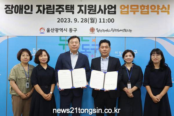 (뉴스21통신/임정훈기자) = 울산시 동구청은 8월 28일 오전 11시 울산동구장애인복지관(관장 이태동)과 ‘울산 동구 장애인 자립주택 지원 사업’을 위한 업무 협약식을 열었다.