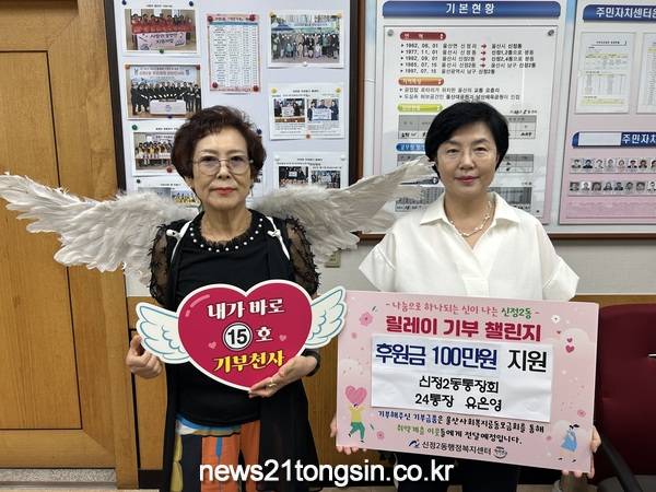 신정2동 통장회 유은영 통장은 29일 신2동 행정복지센터를 방문하여 현금 100만원을 동에 기탁했다