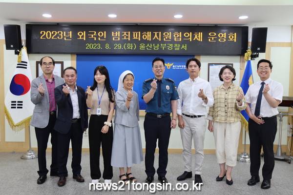 - 2023. 8.29(화) 울산남부경찰서 2층 소회의실에서「2023년 외국인 범죄피해 지원 협의체 회의」를 개최하였다.