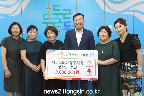 (뉴스21통신/임정훈기자) = 아이코리아 동구지회(회장 김미숙)는 8월 30일 오전 11시 동구청을 방문해 이웃사랑 장학금 200만원을 기탁했다.