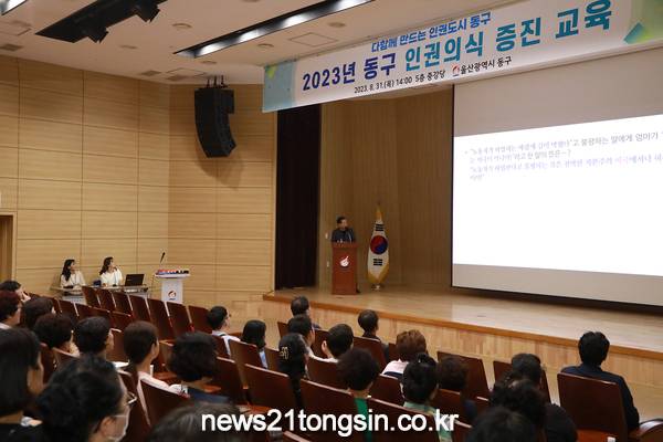 (뉴스21통신/임정훈기자) = 울산시 동구청은 8월 31일 오후 2시 동구청 5층 중강당에서 울산 동구 직원 및 구민을 대상으로 2023년 울산 동구 인권의식 증진 교육을 실시하였다.
