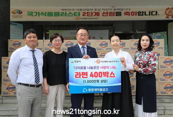 원광새마을금고(이사장 성시종)가 31일 다이로움 나눔 곳간을 방문해 라면 400박스(1,000만원 상당)를 기탁 했다.