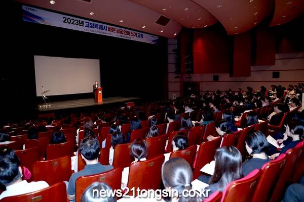 고양특례시(시장 이동환)가 지난 30일 어울림누리 별모래극장에서 공공언어 쓰기 교육을 실시했다. 이날 350여명의 직원이 참석해 어문규범과 어려운 행정 용어를 쉽게 다듬는 법을 배웠다.