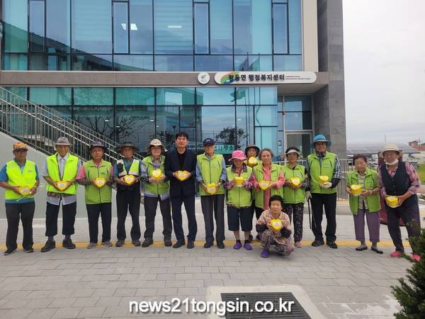 지난 28일 점동면 지역사회보장협의체(공공위원장 이재성, 민간위원장 전충종)는 관내 노인일자리 어르신 19명에게‘행복 비타민 충전’비타민 60일분을 전달하였다.
