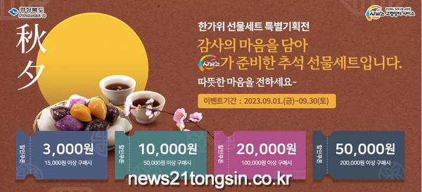 우선, 온라인 행사로 경북 고향장터‘사이소’에서는 9월 30일까지 한가위 선물세트 특별기획전을 통해 구매 금액별 최대 25% 할인쿠폰을 제공하고 제휴몰인 네이버 스마트스토어, SSG닷컴을 통해서도 한가위 기획전과 할인쿠폰을 제공한다.