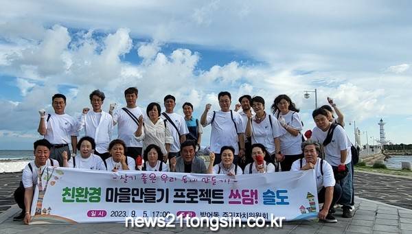 (뉴스21통신/임정훈기자) = 울산 동구 방어동 주민자치위원회(위원장 정동환)는 9월 5일 오후 5시 슬도와 화암추 등대 일원을 중심으로 친환경 마을만들기 프로젝트 ‘쓰담! 슬도’를 실시하였다.