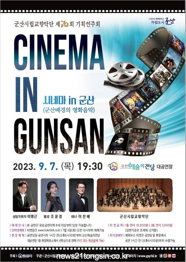 군산시립교향악단이 오는 7일 목요일 오후 7시 30분 군산 예술의전당 대공연장에서 제70회 기획연주회 「CINEMA in GUNSAN」을 개최한다.