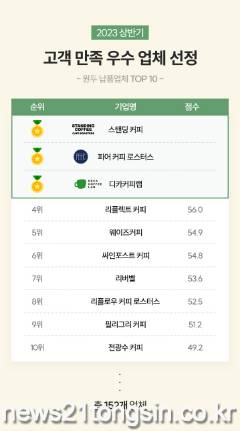 카페 점주가 가장 만족한 원두 업체로 ‘피어 커피’, ‘스탠딩 커피’, ‘디카커피랩’이 꼽혔다.