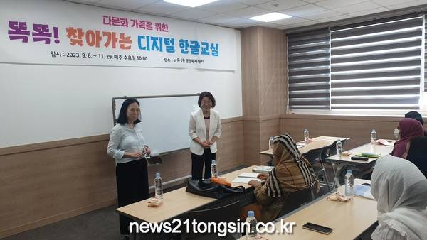 (뉴스21통신/임정훈기자) = 울산 동구 남목2동 행정복지센터는 9월 6일 오전 10시 동행정복지센터 3프로그램실에서 ‘다문화 가족을 위한 똑똑! 찾아가는 디지털 한글교실’을 개강했다.
