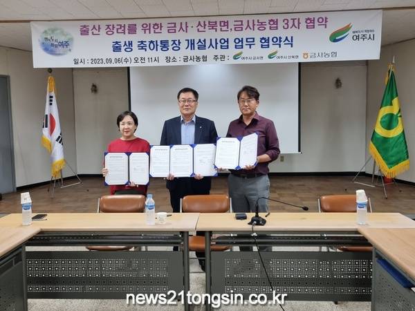 여주시 산북면(면장 한지연)은 6일 2023년 산북면과 금사농협이 함께 하는 출생 축하 통장 개설 사업 업무협약을 체결했다.